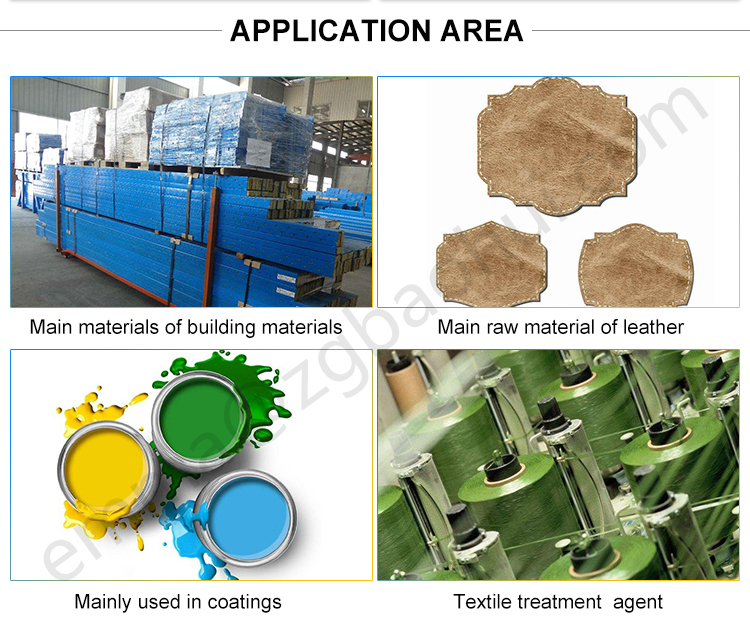2. Used as adhesive, acrylic fiber modification, fiber and fabric processing, paper processing agent, leather processing, etc.