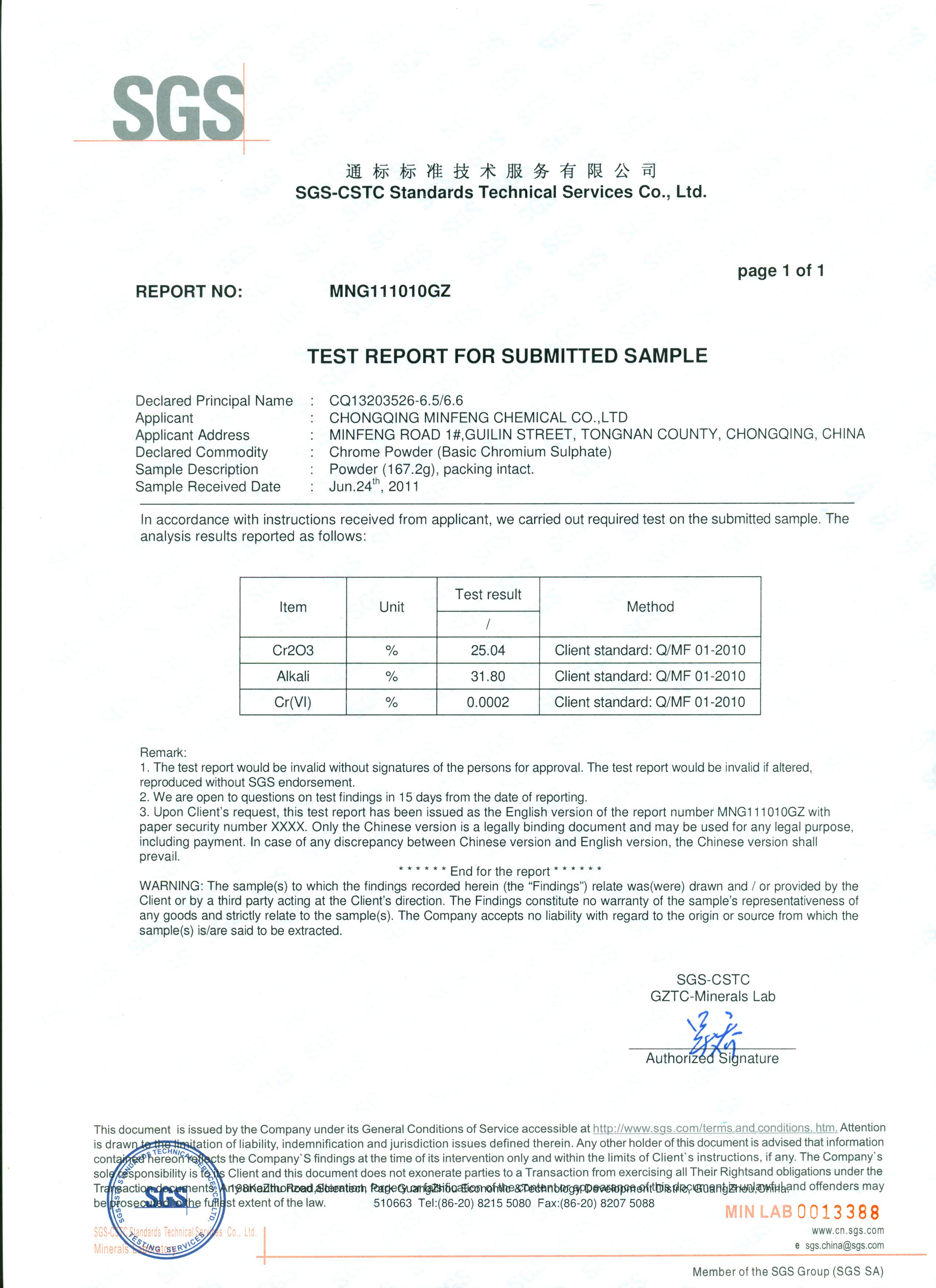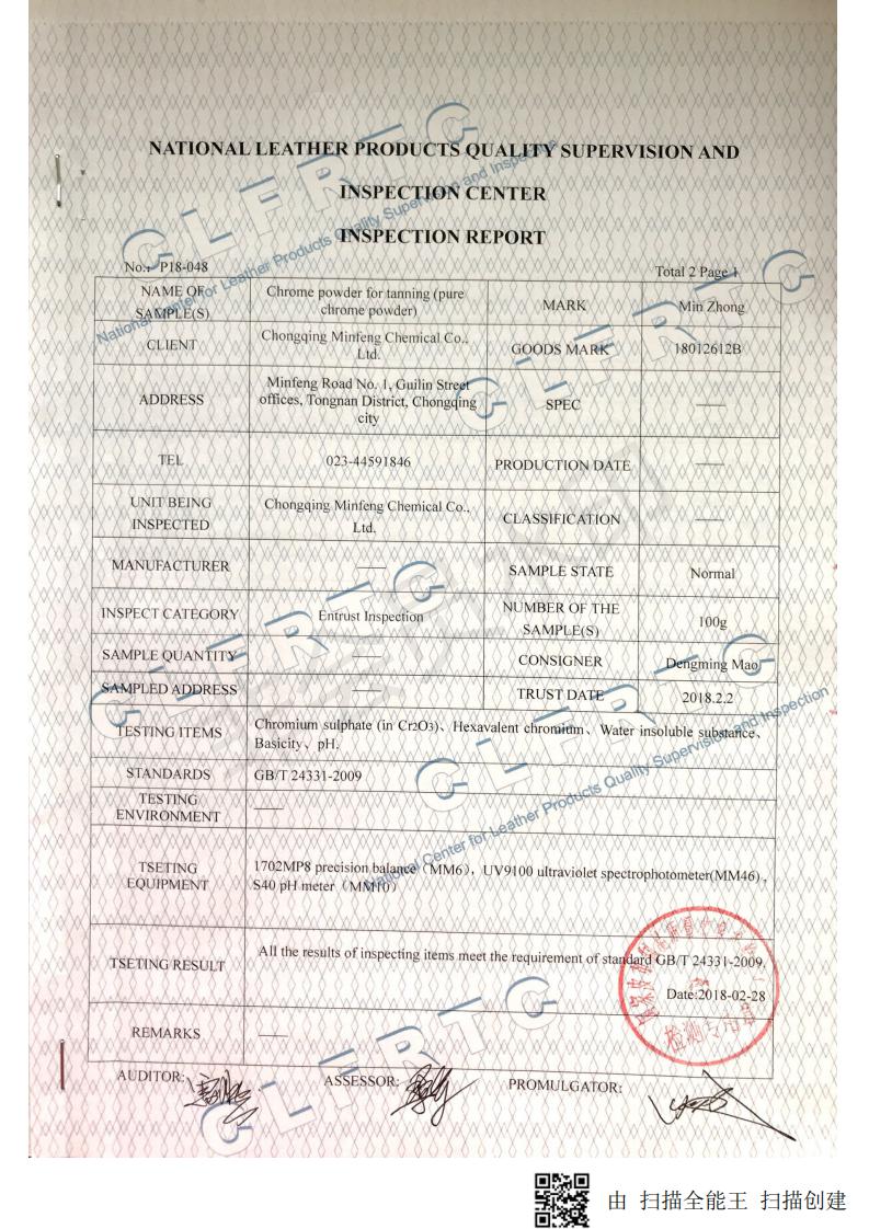| Key words: | Basic chromium sulfate | CAS number: | 39380-78-4 |