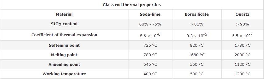 Soda-lime glass rods can work continuously at a temperature of 400°C, and the best quartz glass rods can work continuously at a temperature of 1200°C.