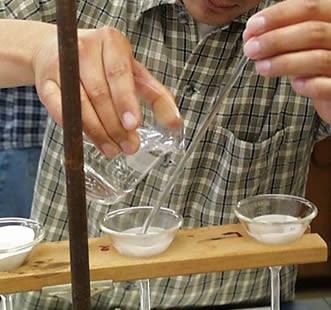 To speed up the mixing of chemicals and liquids, a glass rod is used for stirring.