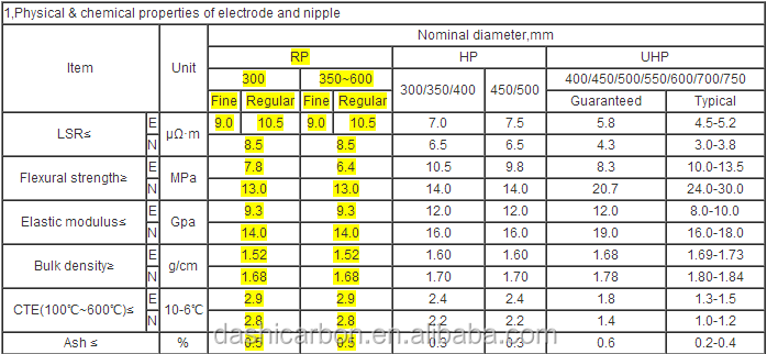 Packaging details: Customized logo (minimum order 20 tons) Customized packaging (minimum order 20 tons) More Bending strength (N/㎡): 8-12MPa brand: Netherlands grade: UHP (Ultra High Power) Resistance (μΩ.m): 5.5 ohms Production capacity: 90000/year Shipping package: Steel strap wooden pallet...... -