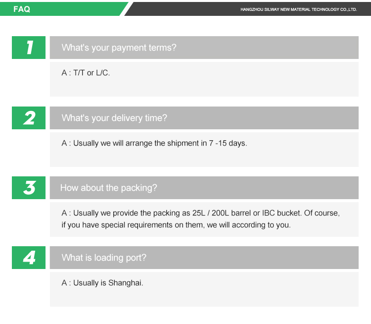 | Packaging Details: | 200L barrel, IBC barrel | payment terms: | L/C, D/A, D/P, T/T, Western Union, MoneyGram |