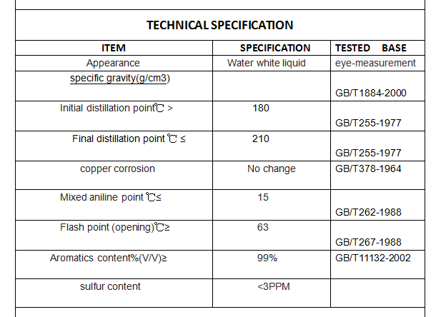 | Aromatic content %(V/V)≥: | 99 | port: | Qingdao port or Shanghai port |