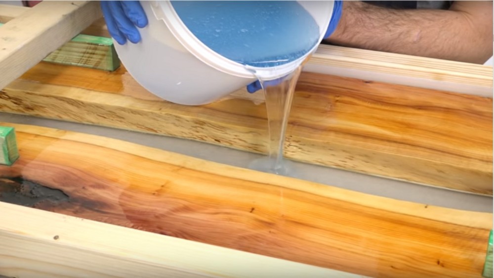 Wearing gloves, pour equal parts resin and hardener into a blender cup. Then pour the mixture into another clean mixing tank to make sure it's evenly mixed.