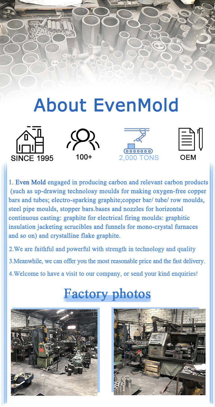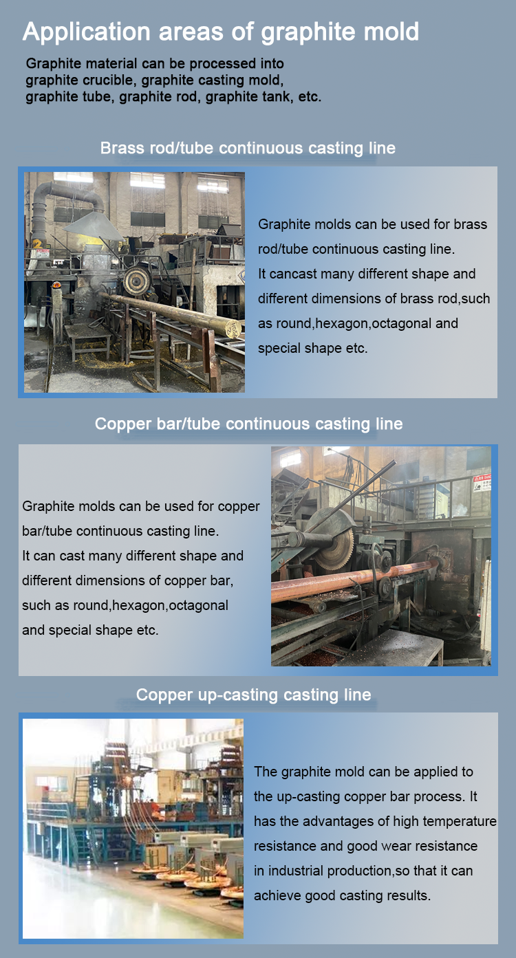 Product Description High-strength thermally conductive isostatic graphite mold for continuous casting Graphite products have the characteristics of low resistance, good electrical and thermal conductivity, high oxidation resistance, strong resistance to thermal shock and mechanical shock, high...... -
