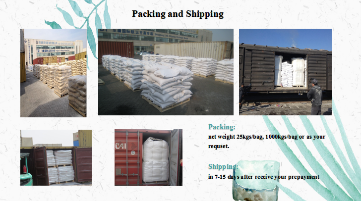 2. Outer packing: plastic woven polypropylene bag; net weight 25kg/bag or 1000kg/bag.