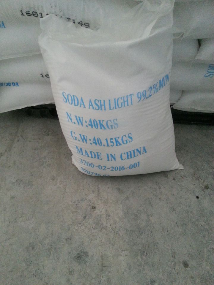 Light soda ash: 40kgs/bag, 21 tons/20'FCL without pallet