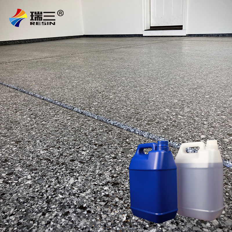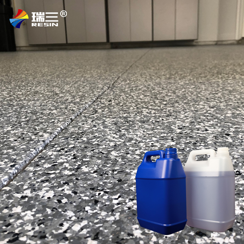 CM-107 color flake epoxy floor coating is a two-component room temperature curing coating. Component A is epoxy resin, and component B is solvent-free epoxy curing agent.