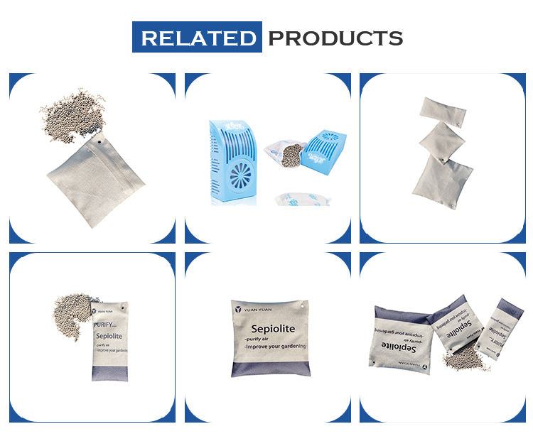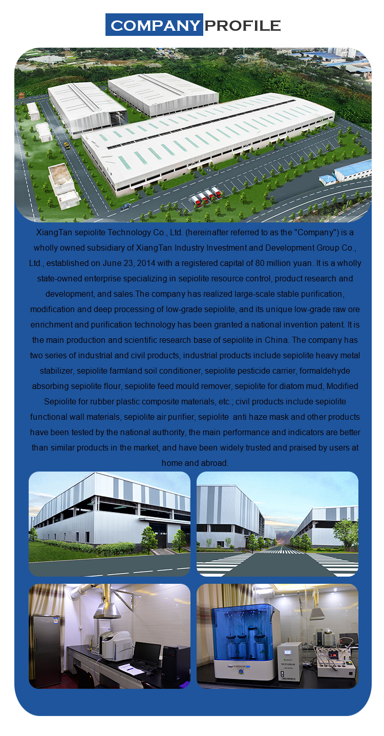 We have sepiolite air purifier, heavy metal chelating agent, sepiolite based soil conditioner, sepiolite functional wall material, sepiolite formaldehyde removal powder for plywood.