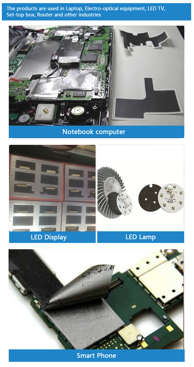 4. High thermal conductivity: Graphite heat sink can be smoothly attached to any plane and curved surface, and can be cut in any form according to customer requirements.