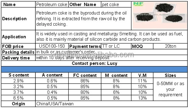 | Other names: | Petroleum Coke / Petroleum Coke | MOQ: | 20 tons |