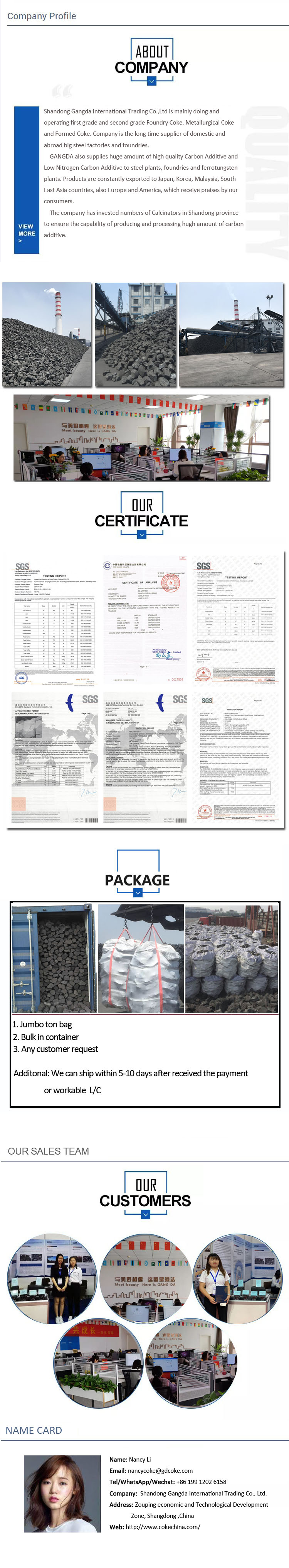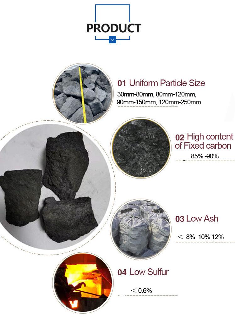 High carbon and low moisture casting coke 60-90mm 80-120mm