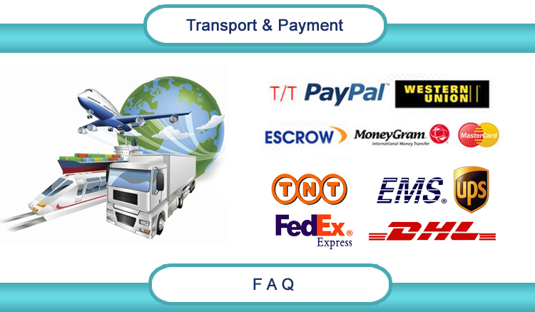 A: Generally, T/T, Western Union or other payment methods are acceptable. 30% deposit in advance, 70% paid before shipment.