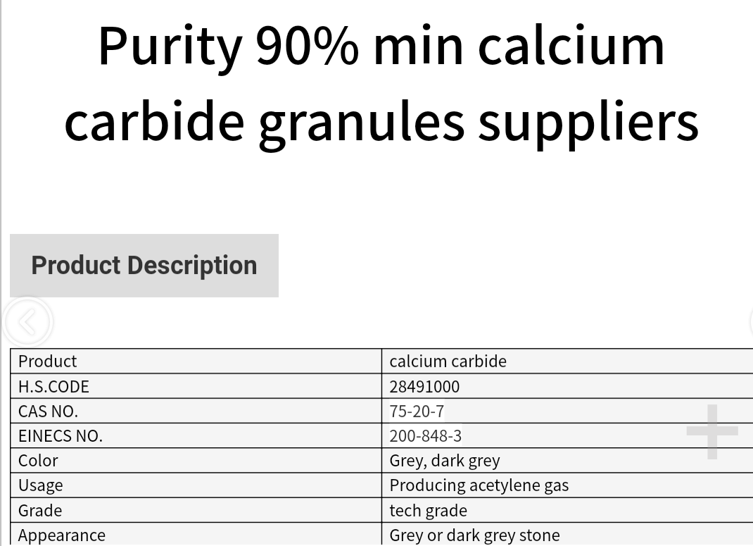 | Calcium carbide: | 90% pure | IF: | calcium carbonate |