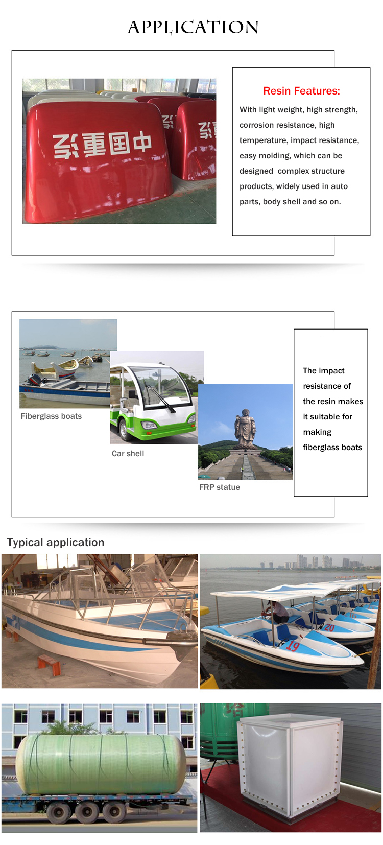 Widely used in shipbuilding and mold making. Water-resistant strength and heat-resistant strength as well as excellent strength, toughness and rigidity, suitable for hand-pasting to make various FRP boats |