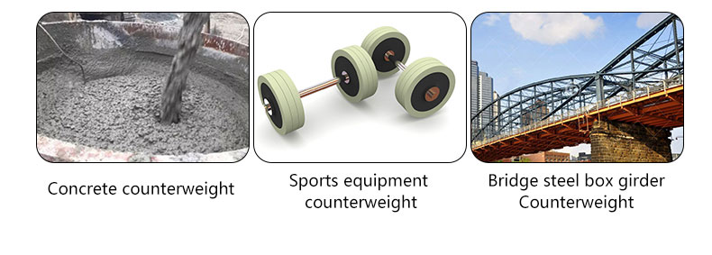 Counterweight iron sand is iron sand and iron ore mainly used for counterweight or counterweight. Mainly used for: lighting, toys, electric fans and other counterweight components; sporting goods, fitness products counterweight; electric counterweight; concrete counterweight (for construction); mechanical industry counterweight, etc.