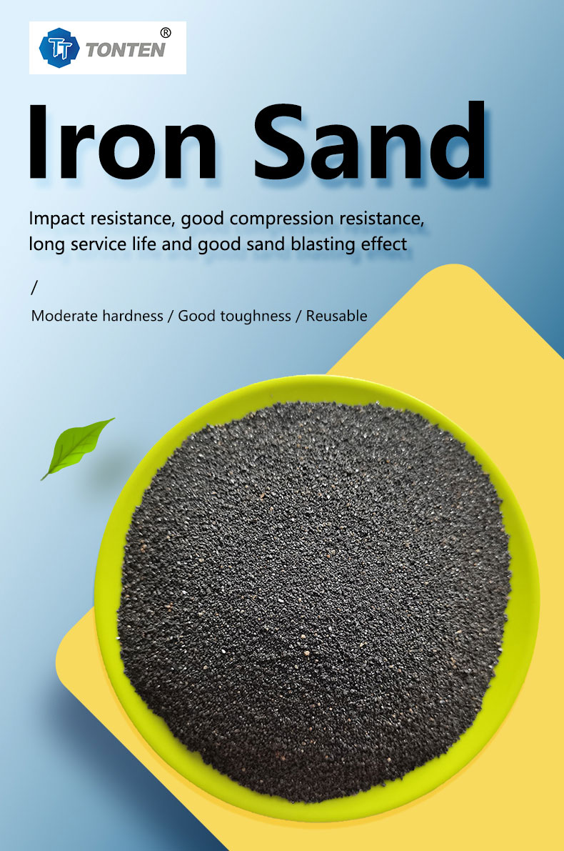 The iron sand abrasive has a shell-like fracture with sharp edges and corners, and new edges and corners can be formed in the continuous crushing and grading, making its grinding ability superior to other abrasives. It is also an ideal material for sandblasting, rust removal, workpiece cleaning, grinding and polishing. It is mainly used for polishing copper and aluminum materials, and the polished parts have good finish.