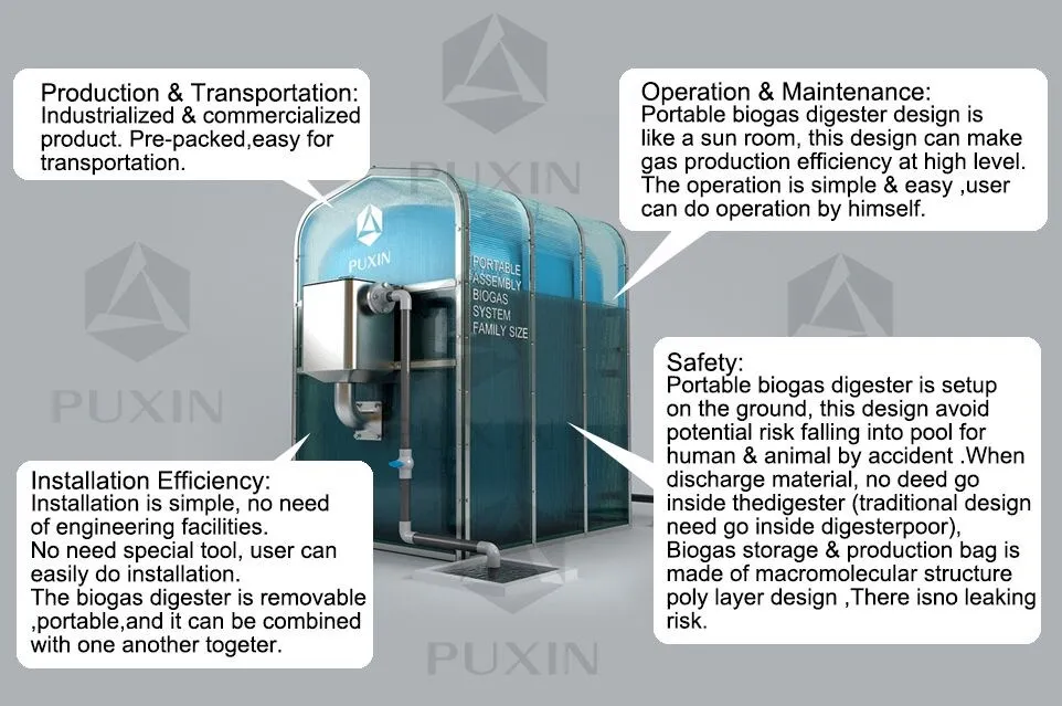 PUXIN portable assembled biogas system is ideal for families, restaurants,