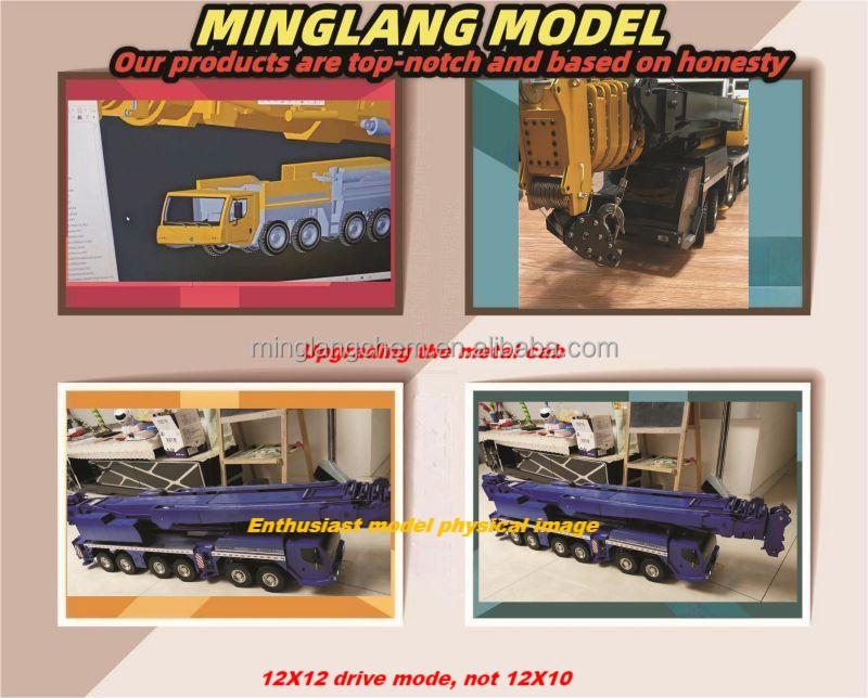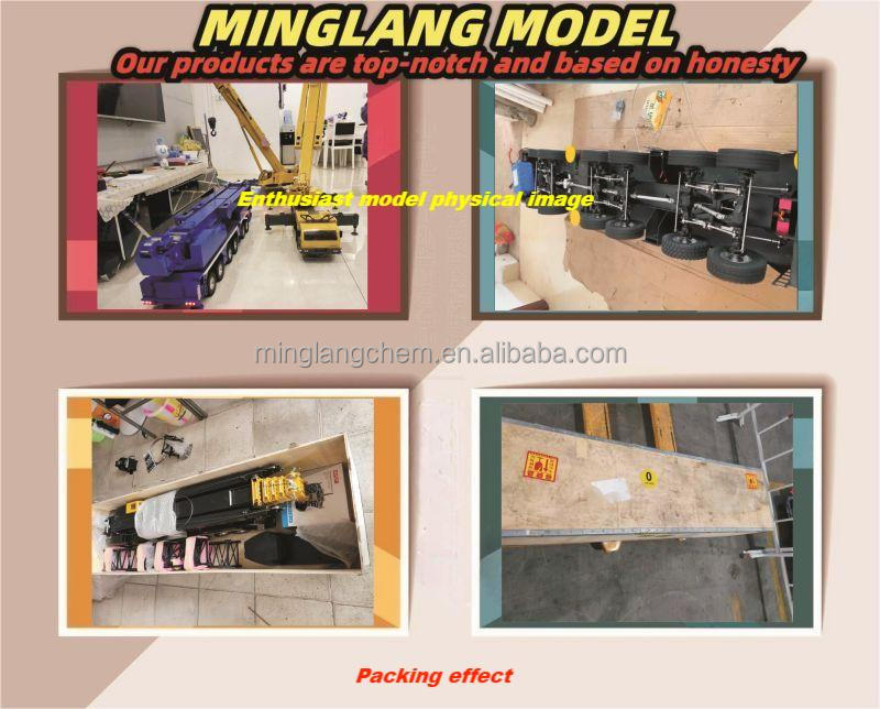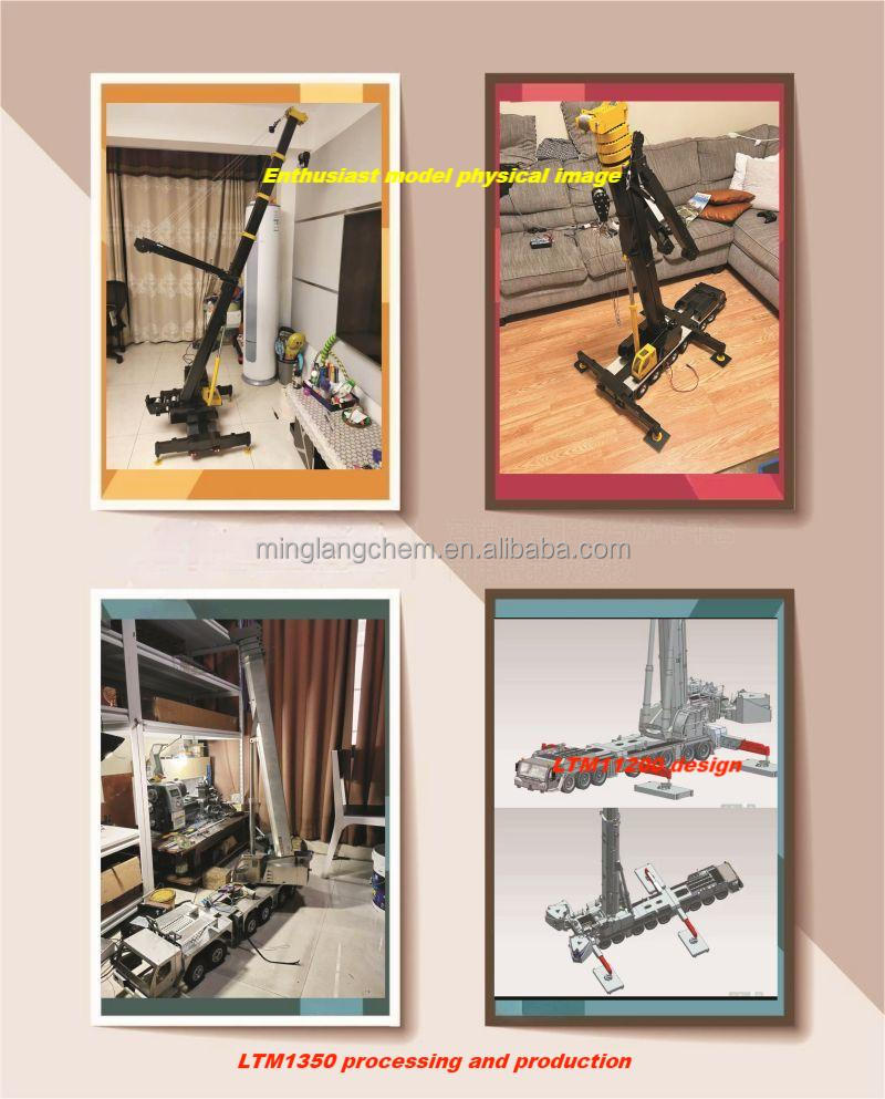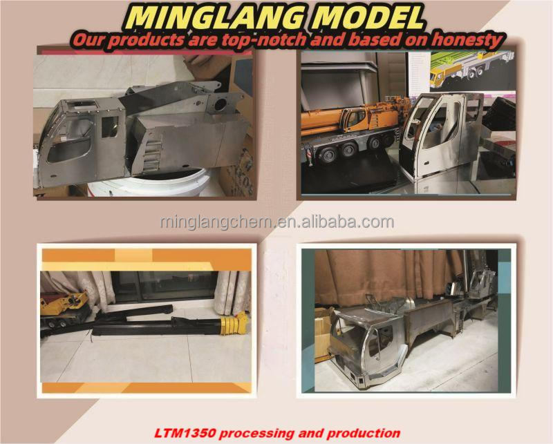 The package after processing includes: 1:14 simulated LTM1350RC metal crane model, with lighting and sound, no interior decoration in the cab (electronic equipment is placed in the cab), a wooden packing box, a remote control, 40kg counterweight, tower components and maintenance tools . (Quotation does not include batteries)
