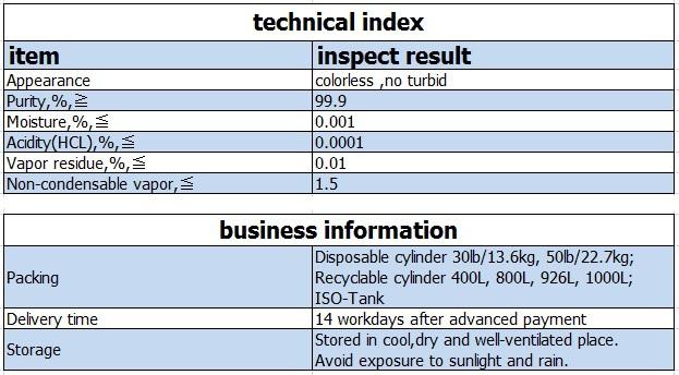 payment terms: L/C, Western Union, D/P, D/A, T/T, MoneyGram acidity: 0.1ppm Origin: Zhejiang, China Packaging Details: Packaging steel cylinder isolation tanks. Filling rate is less than 0.75KG/L Store in a cool, dry, well-ventilated place. Avoid sun and rain. Port: Ningbo, Qingdao, Shanghai...... -