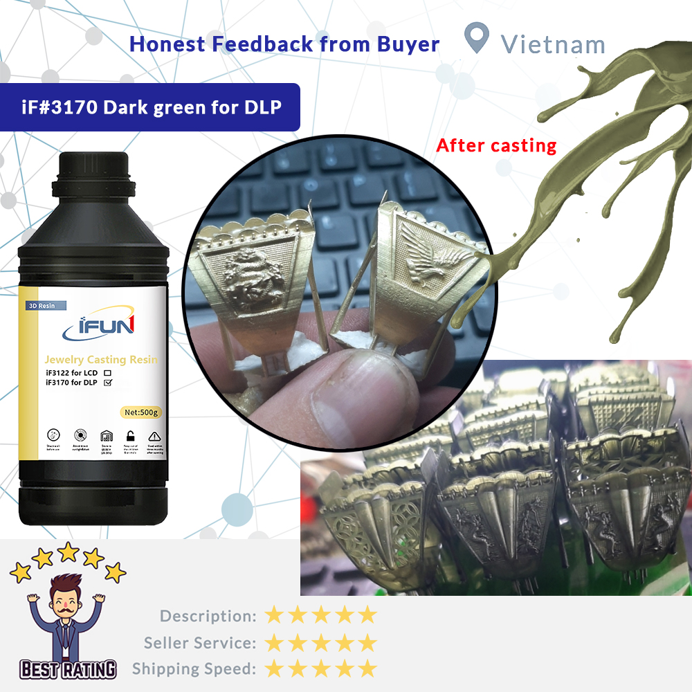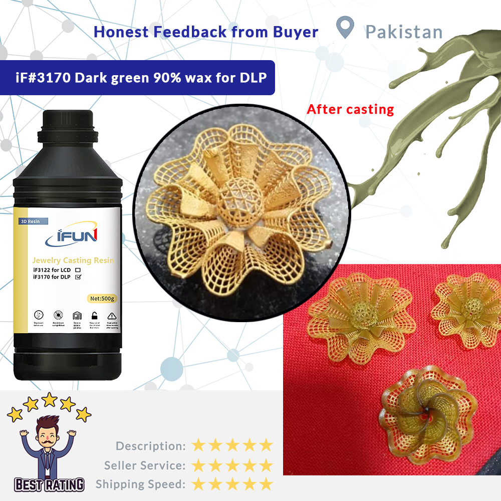 IFUN Dark Green 100% Burn Out Jewelry Casting Resin Using 405nm DLP 3D Resin Printer for Sterling Silver and Gold Bracelets