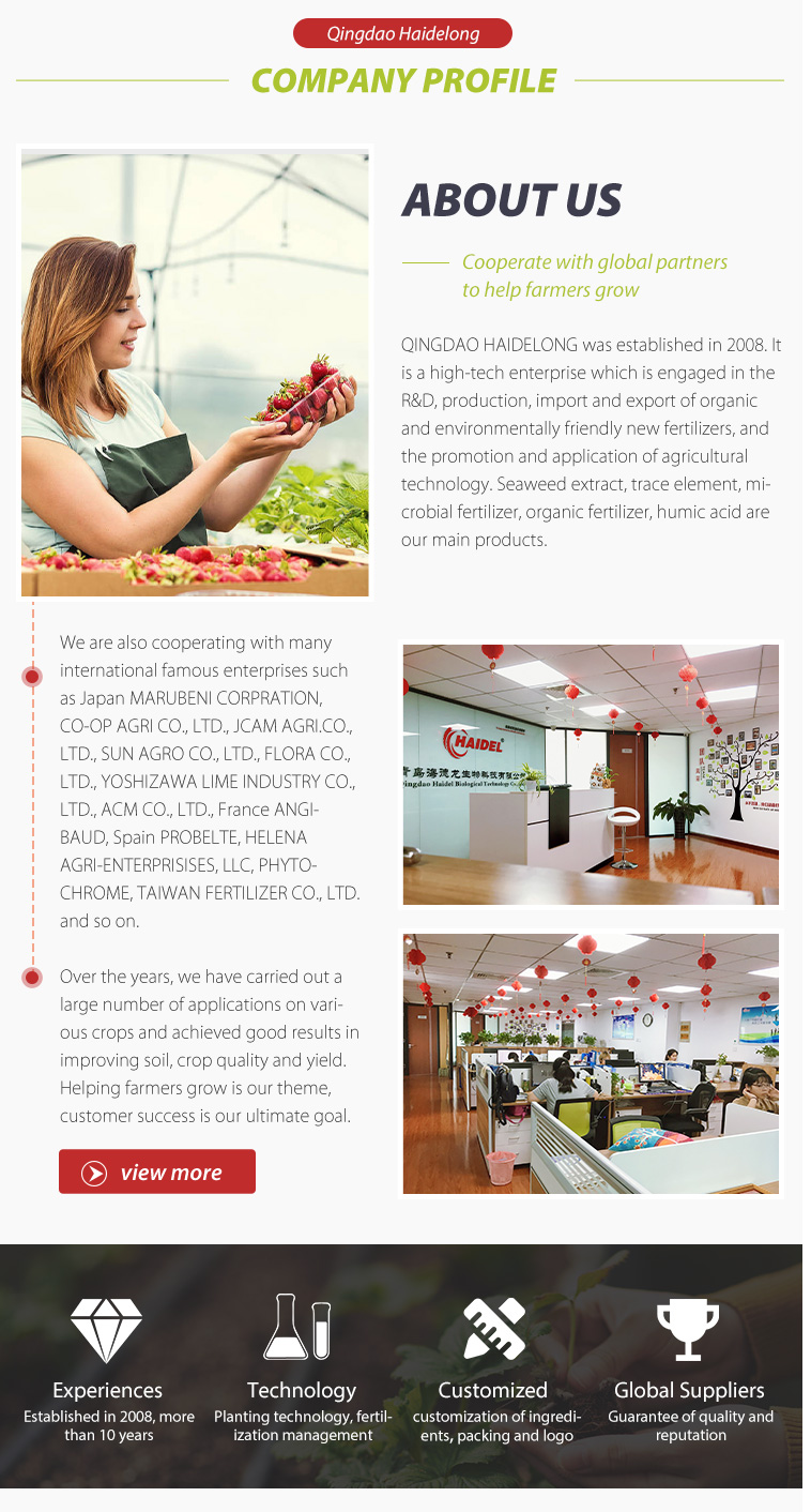appearance: dark brown powder state: powder Feature 2: Increase yield, flowering survival rate payment terms: L/C, Western Union, T/T Package: White label 100 gm/foil 500 gm/foil 1kg/foil 5kg/foil 20kg/drum Feature 1: Reduce drought stress water input transplant shock nutrient loss Package preview:.... -