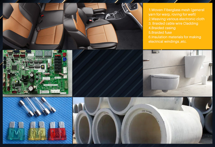 Glass fiber yarn is the raw material for industrial fabrics such as electrical insulation materials, electronic industrial fabrics, and pipes. Widely used in circuit boards and weaving various fabrics, it has the functions of reinforcement, insulation, corrosion resistance and heat resistance.