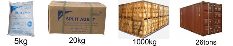 Other names: Stone cracking chemical powder Origin: Guangxi, China port: Guangxi Wuzhou Port brand: Stone Cutting Chemicals Package preview: Packaging Details: 5kg per bag, 4 bags per carton, 50 cartons per pallet. Name: Expanded cement mortar for quarry EINECS number: silent blast mortar Key...... -