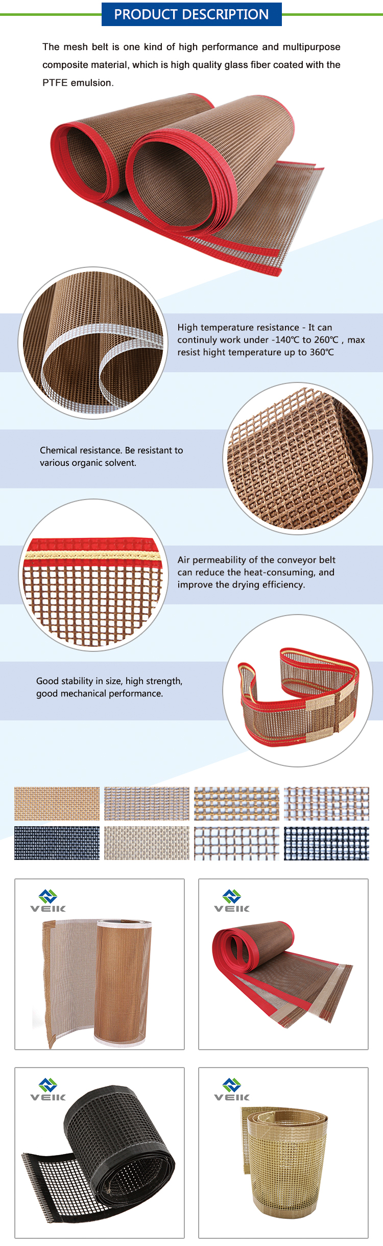| product name: | Breathable PTFE conveyor belt | brand: | Vic |