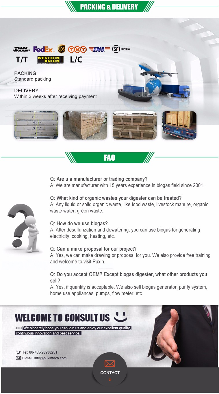 Processing materials: food waste and animal waste brand: Pu Xin life: more than 10 years Install: quick assembly feature: Hardy port: Shenzhen, China describe: Low-cost 2m3/d biogas production household biogas digester application: cooking fuel payment terms: L/C, T/T, Western Union, Trade......