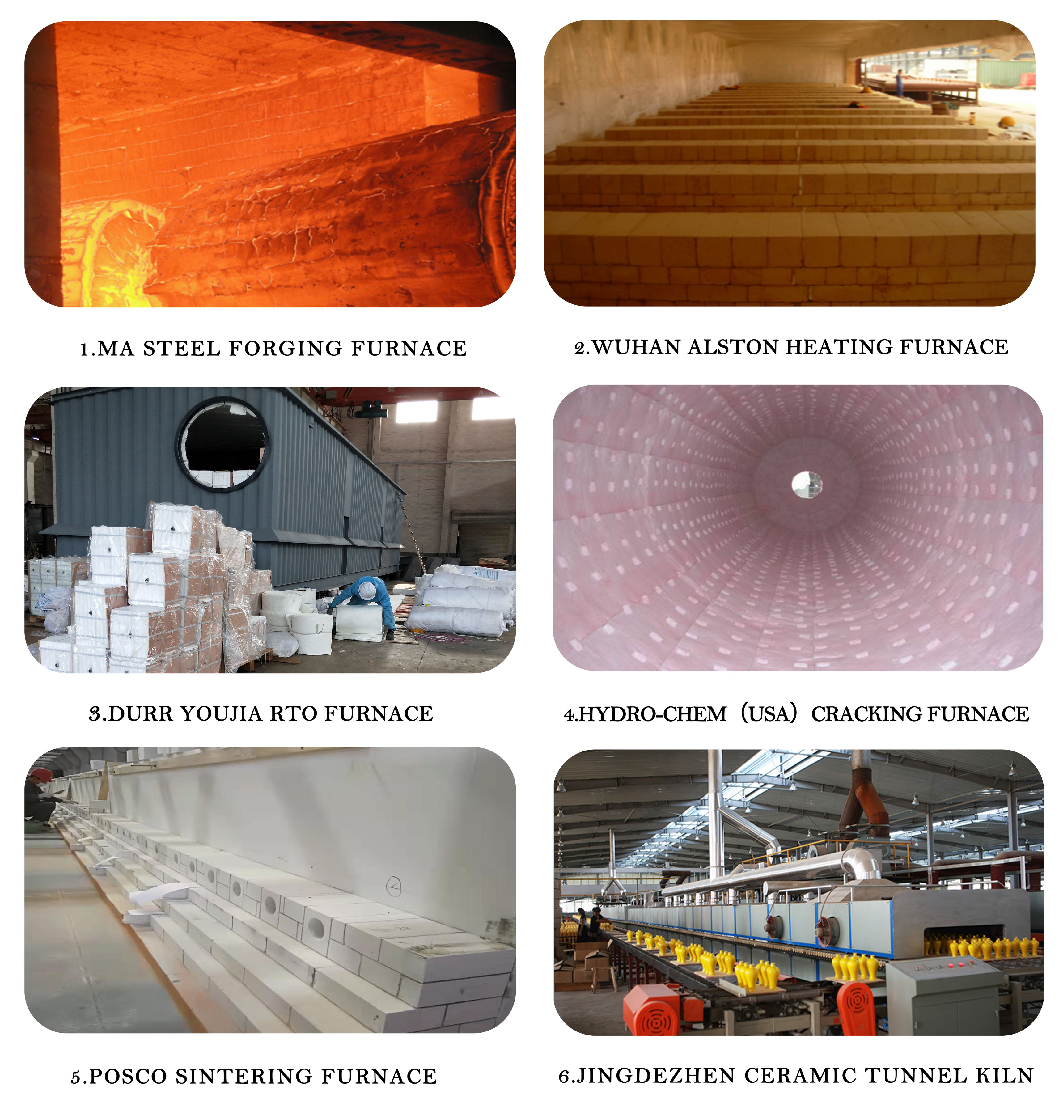 - Steel: transfer ladle cover, soaking pit cover, heating furnace, continuous annealing furnace, lift-off furnace