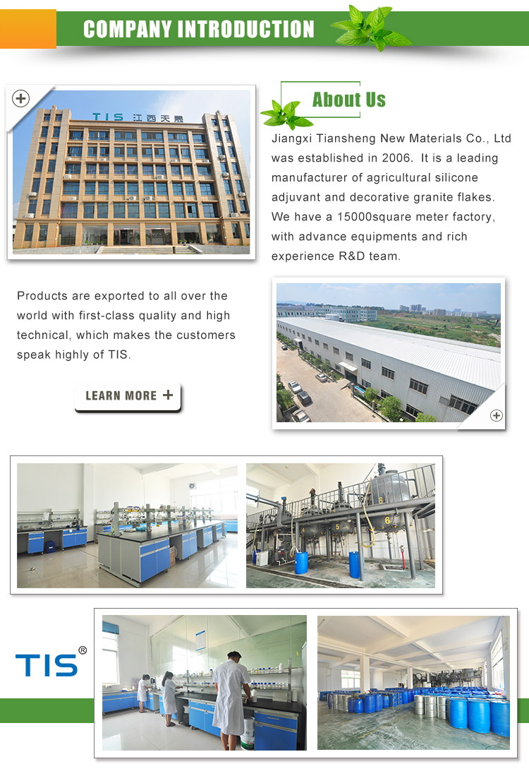 IF: (C2H4O)nC10H28O3Si3 EINECS number: not applicable Influence: Penetration, wetting, super spreading Package preview: model: TIS-372 Packaging Details: Sales Unit: Single Pack Packaging: Carton Single Pack Dimensions: 24X20.5X15.5 cm Gross Weight of Single Pack: 2.000 kg payment terms: L/C,...... -