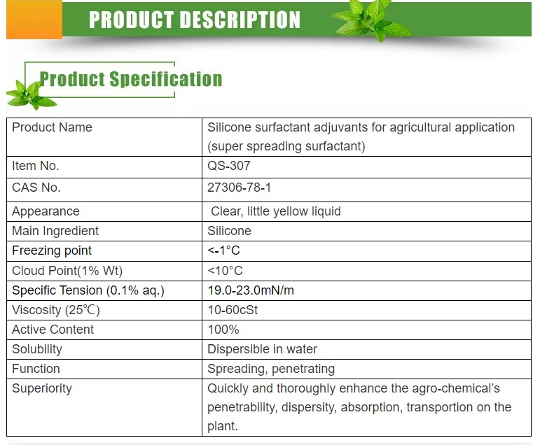 Super Wetting Penetrant Silicone Surfactant Auxiliary Agrochemical QS-307