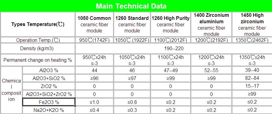 | 1400 high aluminum ceramic fiber module | |||||||||