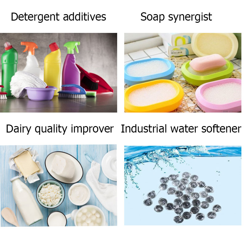 As the main synthetic detergent builder, water softener, detergent builder foaming agent, oil emulsifier, pH buffer peptizer, and provides alkalinity. In the petroleum industry, it is used as a peptizer and anti-flocculating agent for oil well drilling mud, a chelating agent in cotton boiling, an organic synthetic bath water softening catalyst, a red and black water control agent, a cathode corrosion inhibitor, and can also be used in the manufacture of synthetic rubber and fibers. industry.