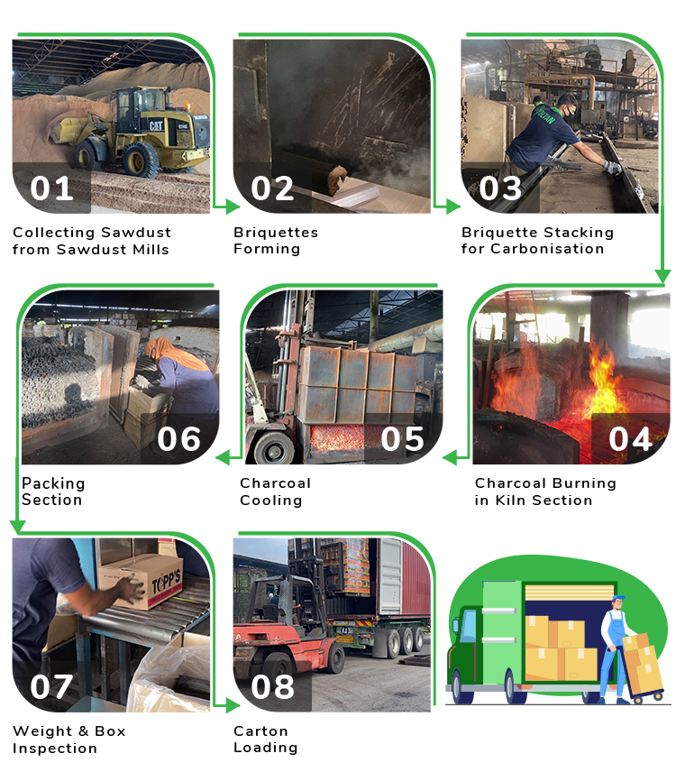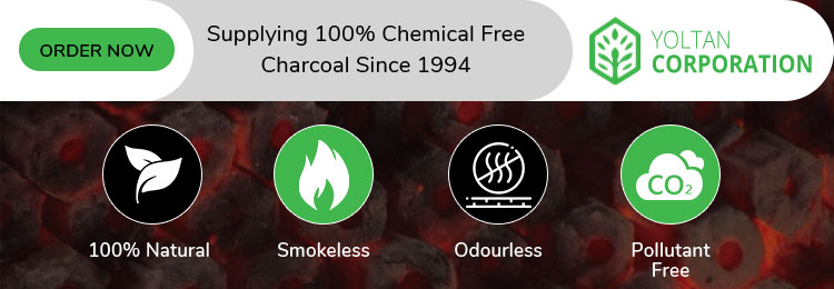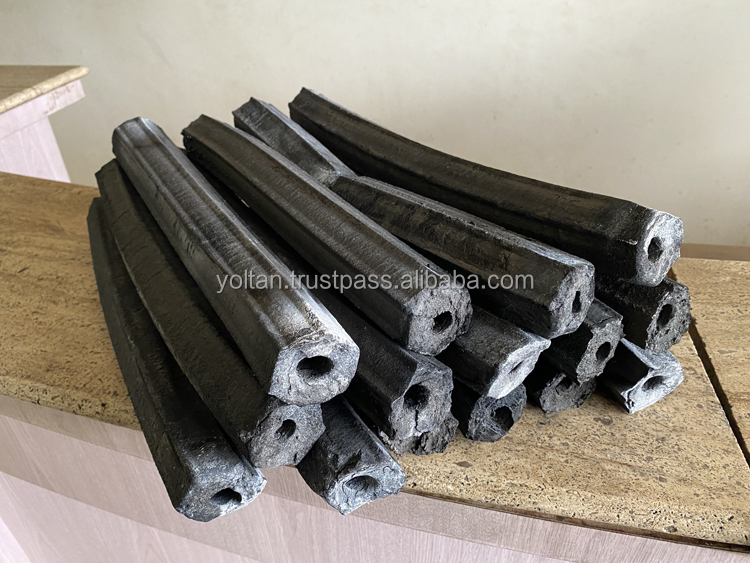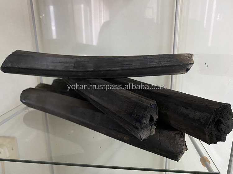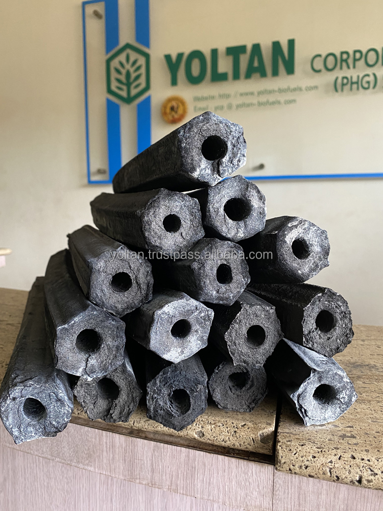Made from carbonized high-density wood briquettes (HDWB). HDWB is made from 100% natural tropical wood sawdust densified without any additives or chemical binders.