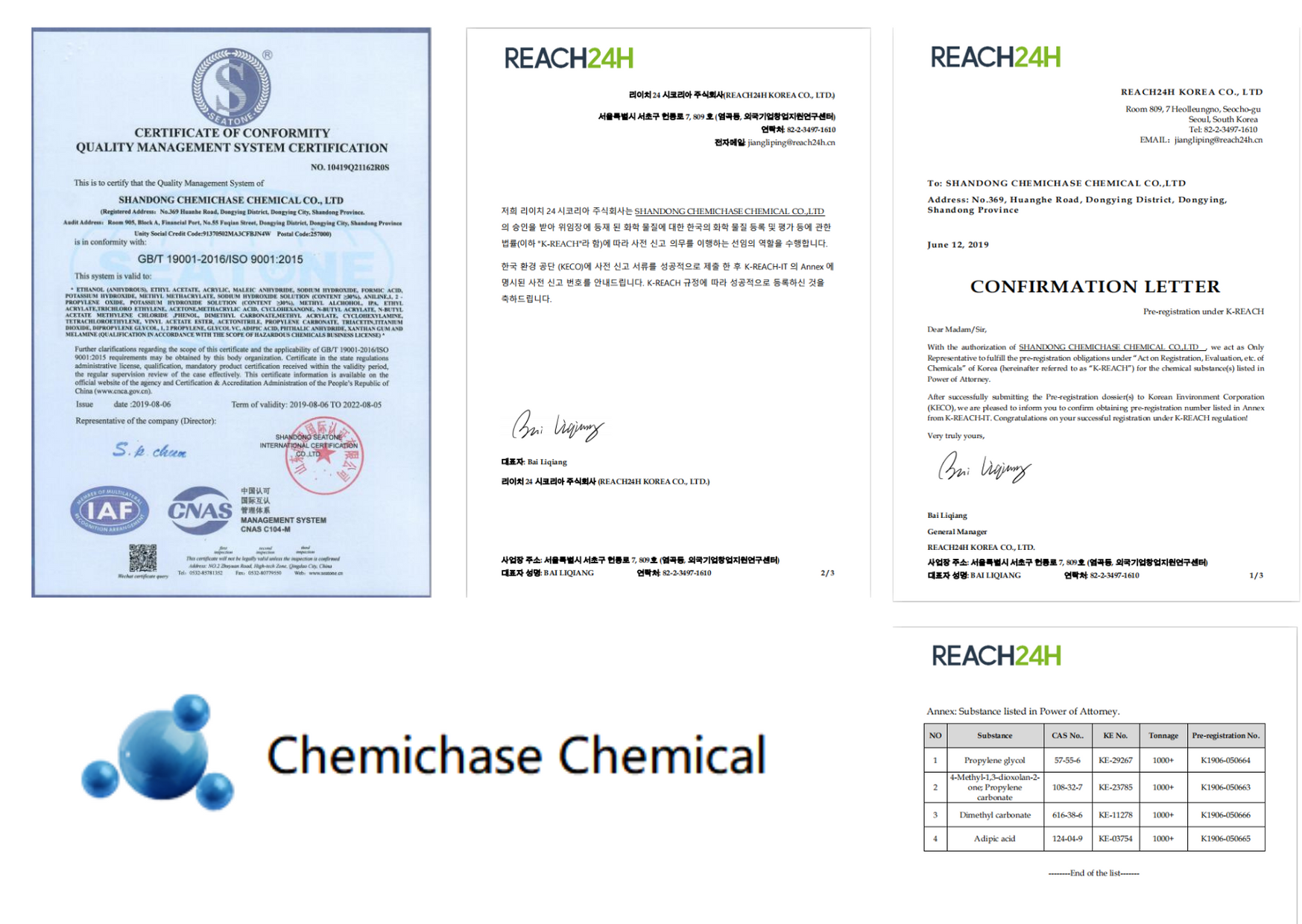 Shandong Kemis Chemical Co., Ltd. was established in Dongying, Shandong, China in 2016 and is a world-class chemical distributor. We are experts in the research and production of coatings, UPR, polyurethanes, water treatment products and solvents. Our products include but are not limited to propylene glycol, dipropylene glycol, propyl carbonate, dimethyl carbonate, maleic anhydride, phthalic anhydride, methylene chloride, calcium hypochlorite, adipic acid, triacetin, xanthan Glue, ascorbic acid, melamine, maltodextrin. Our joint-stock factories are located in Shandong, Hebei and Jiangsu. We have the raw material advantages of Shandong and the export transportation advantages of Qingdao, Tianjin and Shanghai ports. Kaimai Chemical is famous for its high-quality products and excellent services. At present, our products are stably supplied to more than 200 countries and regions such as the Middle East, South America, North America, Southeast Asia, Africa, and Europe. We have professional knowledge and geographical advantages to optimize local resources and provide customers with high-quality products and services. To provide you with competitive products while minimizing your costs. With decades of experience in chemicals production and trading, we can also be your honest advisor on chemicals in China, providing extra help for your business development.