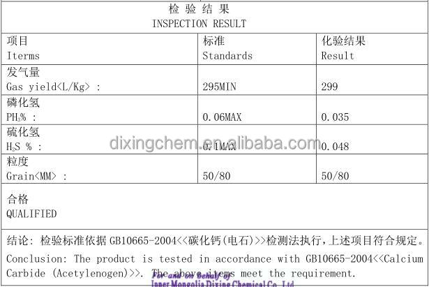 pack: 100kg/50kg/iron drum model: 0.2-120MM payment terms: L/C, D/P, wire transfer EINECS number: 200-848-3 Place of origin: Inner Mongolia, China Grade standards: Agricultural grade, industrial grade Customs code: 284910 application: Produce acetylene gas; Other names: Carbide Packaging details:...... -