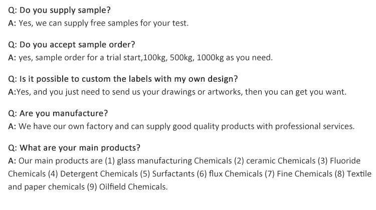 Packaging Details: 1.25kg/kraft paper bag brand: Ecological Energy MF: Carbon trioxide payment terms: Letter of Credit, D/A, D/P, T/T usage: Coating additives, electronic chemicals, paper chemicals, plastic additives, surfactants, book binding, pressure-sensitive adhesives Application 2: Hair...... -