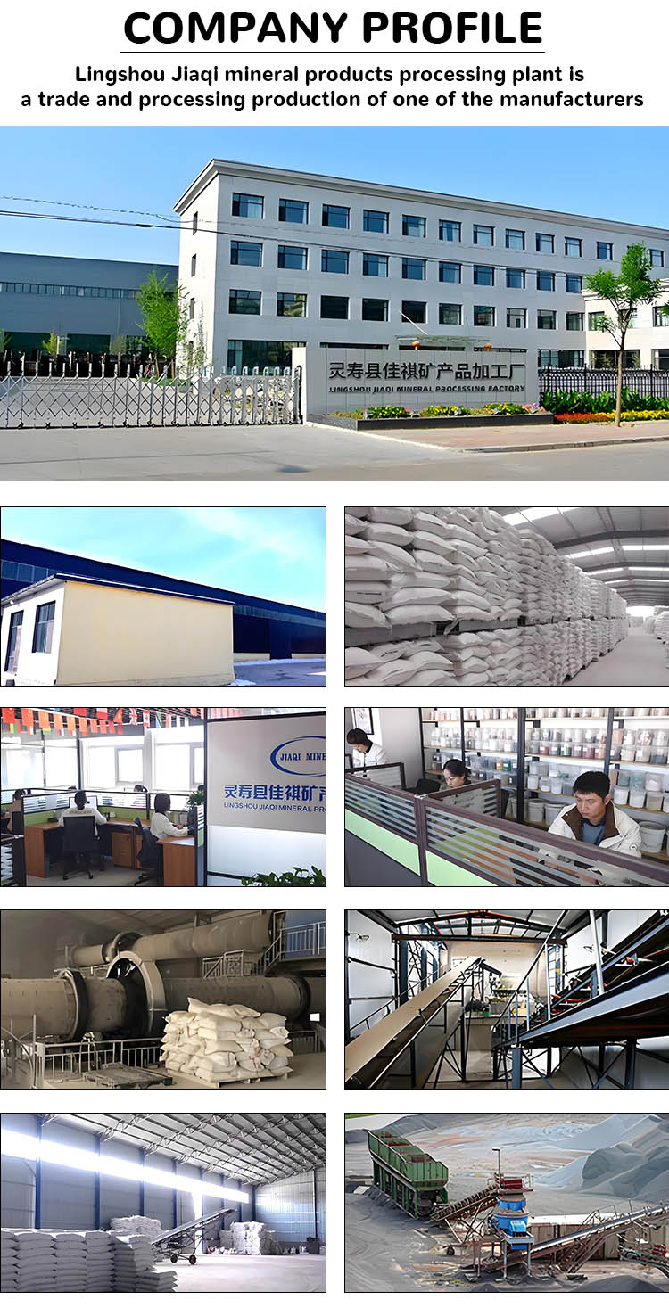 Jiaqi Mineral Processing Factory is located in Lingshou County, which is famous for its minerals such as tourmaline powder, vermiculite, negative ion powder, colored sand, and silica powder.