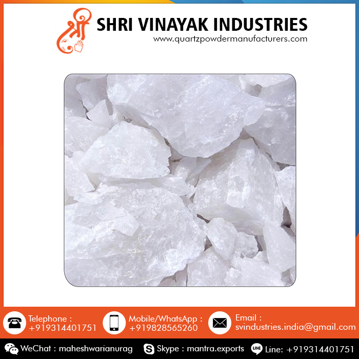 Shri Vinayak Industries is a quartz mine and we have our own mines in India. We can also produce quartz in various sizes according to buyers' requirements. Quartz (Silicon Dioxide): As a type of crystal, quartz is used as a semi-precious stone. Cryptocrystalline forms may also be gemstones: agate, jasper, agate, carnelian, chalcedony, etc. Crystal gem varieties include amethyst, citrine, rose quartz, smoky quartz, and more. Because of its piezoelectric properties, quartz is used in pressure gauges, oscillators, resonators, and wave stabilizers; in heat-ray lamps, prisms, and spectroscopic lenses because of its ability to rotate the plane of polarization of light and its transparency in ultraviolet light. Used in the manufacture of glass, paint, abrasives, refractory materials and precision instruments.