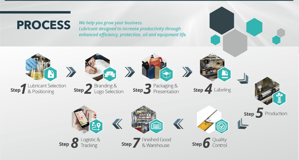 • Choose the lubricant that will make up your first container. There are flexible MOQs here to ensure you can serve a larger client base while taking up as little capital as possible. We are also able to offer you over 200 lubricant products that can be produced in-house.