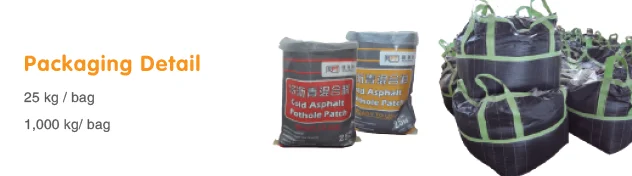 type: Modified asphalt Shelf life: 24 months Package option 1: 20kg bag model: GRM-CA-02 color: Black payment terms: wire transfer brand: turn green Package preview: Packaging Details: 20kg/bag Suitable for the weather: all seasons Package option 2: 20kg drum product name: asphalt cold patch grade:.... -