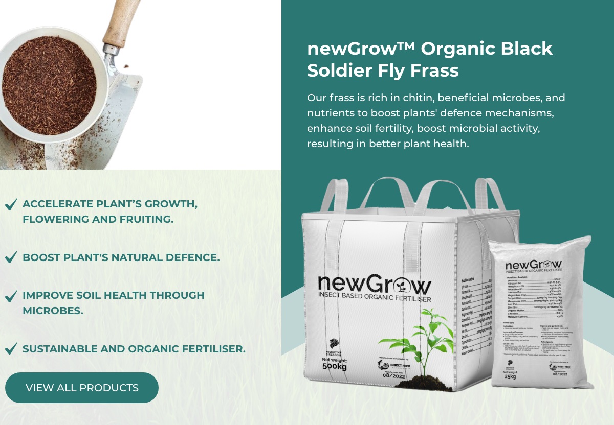 | feature | - Contains chitin and "plant vaccine" for root development - Contains a homogeneous mixture of organic substrate, larval excreta and other microbial nutrients - PH: 7.9 (Helps reduce soil acidity!) - NPK ratio: 3:3:5 |
