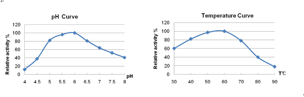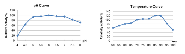 2. Temperature range: the effective temperature is 50-100°C, the optimum temperature is 85-95°C, and it can still maintain considerable activity at 100°C